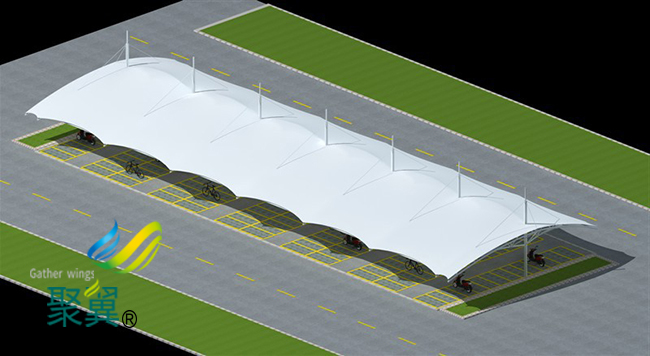 南京市膜結(jié)構(gòu)車棚可以從根本上克服傳統(tǒng)膜結(jié)構(gòu)的大跨度(無支持)建筑上所遇到的困難,可創(chuàng)造巨大的無遮擋的可視空間。