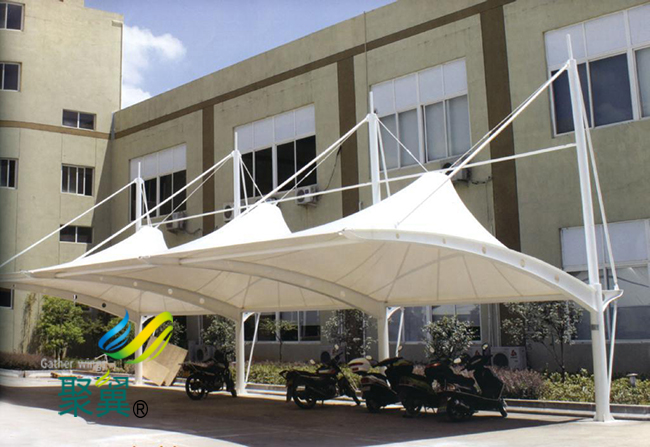 邢臺市膜結構車棚展示了一種力的均衡美感,邢臺市膜結構車棚膜構造是一種張力結構,在一定的張力作用下有一定的外形和剛度,邢臺市膜結構車棚是一種受力最為合理的結構方式。