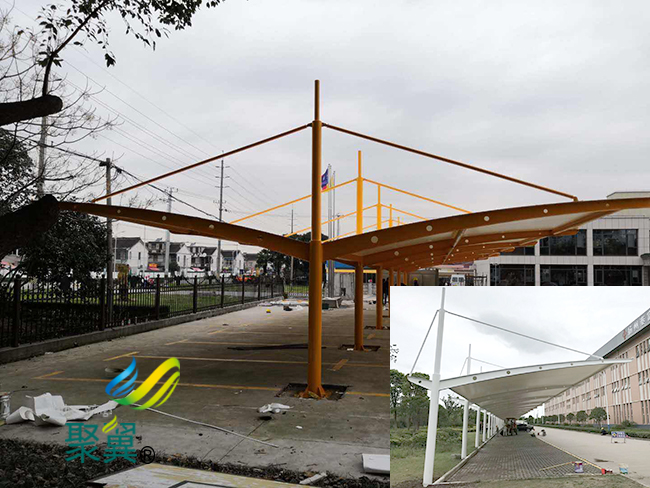 更短的膜結構車棚施工周期,景觀膜構造工程中一切加工和制造依設計均可在工廠內完成,在現場只停止裝置作業。相比傳統建筑的施工周期,膜結構車棚簡直要快一倍。
