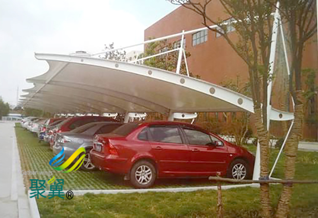 安徽省安慶市膜結(jié)構(gòu)車棚精心規(guī)劃的可展屋蓋的高雅滑動(dòng)表現(xiàn)了人與自然的調(diào)和。