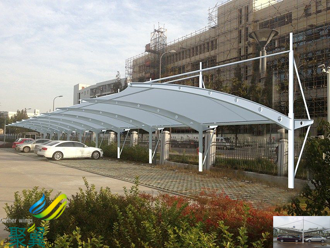 1,江蘇省南通市港閘區(qū)膜結(jié)構(gòu)車棚保證膜面有足夠的曲率,以獲得較大的剛度和美學效果;