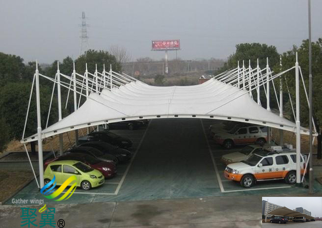 設計的時候一定進行靜力計算,在保證外形美觀的同時,應該確保整體結構的穩定性;加工的時候保證焊接質量,防腐處理要到位,膜材裁剪要合理;安裝的時候支承架構一定要連接牢固,膜材張拉一定要到位,保證膜面預應力達到設計要求;維護的時候表面尖銳、硬質的物體刮劃膜面,鋼結構不得隨意調整、拆卸,極端天氣下安排人員排水、排雪,定期對車棚進行檢查。