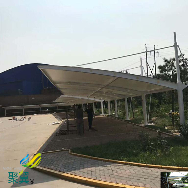 已經(jīng)越來越受到人們的認(rèn)可,膜結(jié)構(gòu)由于所用的材質(zhì)輕、韌性好,所以可以讓車棚的設(shè)計(jì)跳脫出傳統(tǒng)彩鋼瓦、陽光板車棚的單調(diào)造型,給設(shè)計(jì)師更大的施展創(chuàng)意的空間,使得車棚不僅安全實(shí)用還能具有一點(diǎn)點(diǎn)藝術(shù)氣息。