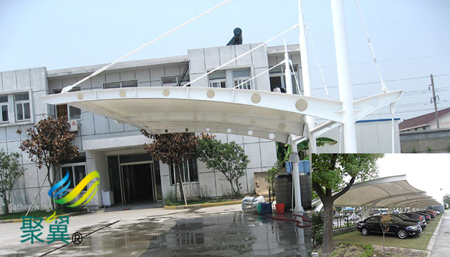 膜結構車棚選擇相適應的材料與工藝,同時滿足不同建筑環境的防腐、防水要求。至于節點美觀是無論如何重視都不過分,任何節點設計都應放到特定局 部與整體環境,以唯美去審視、思量,如連接件的光滑精美外形、力流的連續流暢、對稱與平衡,輕靈簡潔性等