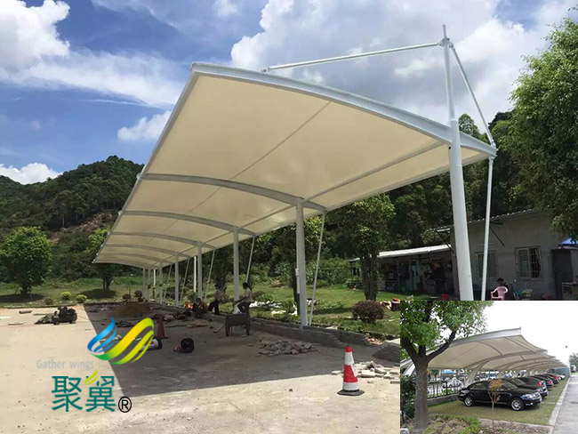 膜結(jié)構(gòu)車棚類型有:彩鋼瓦車棚、陽光板車棚、膜結(jié)構(gòu)車棚,其中膜結(jié)構(gòu)車棚是最近幾年開始快速流行起來,這是因為越來越多的人認識到了膜結(jié)構(gòu)車棚的優(yōu)點,賦予它這些優(yōu)點的主要原因是得益于其使用的覆蓋材料——膜材,膜結(jié)構(gòu)車棚常用膜材具有強度高、耐久性好、防火難燃、自潔性強、透光性好、不受紫外線影響、使用壽命長等眾多特點,除了滿足遮陽避雨等車棚基本功能外,重慶市潼南縣膜結(jié)構(gòu)車棚造型美觀,也起到了很好的景觀建筑作用,所以如今已經(jīng)成為了制作重慶市潼南縣膜結(jié)構(gòu)車棚的首選形式。 重慶市潼南縣膜結(jié)構(gòu)車棚是一種簡單的膜結(jié)構(gòu)建筑,沒有什么技術(shù)含量,所以很多不具備專業(yè)資質(zhì)的施工隊伍都在從事相關(guān)的業(yè)務(wù),這些隊伍往往打著低價的旗號吸引客戶,而客戶一般不具備專業(yè)的相關(guān)知識,很容易上當(dāng)受騙,所以在選擇施工隊伍的時候一定要仔細甄別,今天小編就為大家說下判斷膜結(jié)構(gòu)車棚是否合格的7大要點。