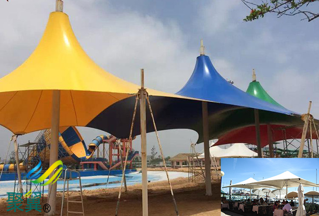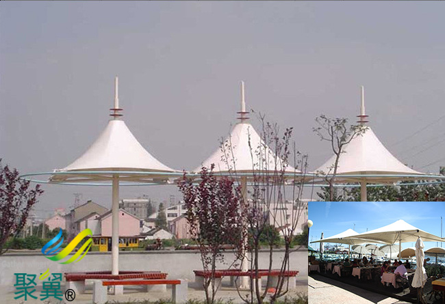 膜結(jié)構(gòu)使用壽命及特點:膜結(jié)構(gòu)景觀棚的篷布材質(zhì)是膜結(jié)構(gòu),而膜材的最大特點是強度高、耐久性好、防火難燃、自潔性好,不受紫外線影響,使用壽命長,一般15-30年。