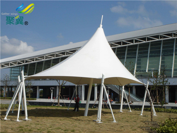 張拉膜結構的基本組成單元通常有:膜材、索與支承結構(桅桿、拱或其他剛性構件)。