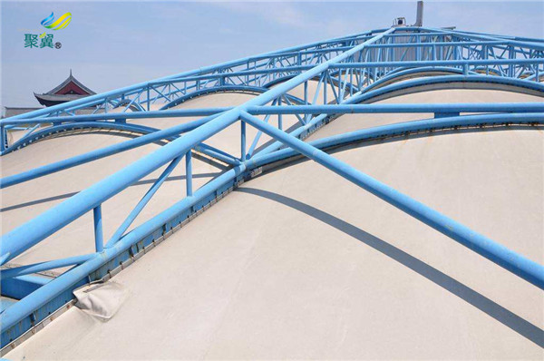 城市污水處理廠的臭氣污染一直是讓人頭痛的問題,污水池加蓋除臭體主要針對池體惡臭氣體收集的最有效辦法就是對污水池進行加蓋密封,再通過進風口和出風口進行換氣,把惡臭氣體抽送到智力裝置中進行除臭處理。選擇污水池加蓋膜結構可以一次性解決所有問題。我們要選擇的材料是要壽命長、韌性好、抗風雨,不容易撕裂漏氣。下面小編來給大家說一說上海污水池膜結構有哪些好處?