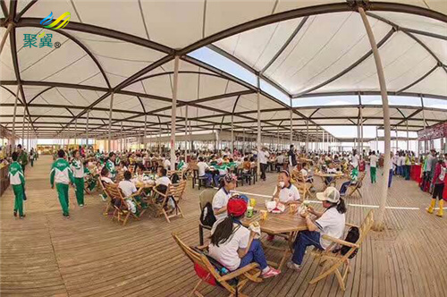 膜結(jié)構(gòu)作為居住空間的外表面的結(jié)構(gòu)形式,在很遙遠(yuǎn)的古代就已經(jīng)有在,將草席和獸皮、毛織物等皮樓用簡(jiǎn)單的木柱等頂起,用繩子固定在地面上構(gòu)成穩(wěn)定的簡(jiǎn)單住宅,這種建造方式在上古時(shí)代就開(kāi)始應(yīng)用了。皮膜質(zhì)量較輕且堅(jiān)固,富含柔軟性,搬運(yùn)、臨時(shí)設(shè)置、重復(fù)使用都比較便利,現(xiàn)在游教民中仍然還有應(yīng)用,可以說(shuō),源于皮膜的應(yīng)用