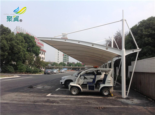 不管是做哪種車棚我們都必須要保證原材料之間的連接安全、合理、美觀,車棚的節點構造應符合國家標準。對金屬連接件應采用可靠的防腐蝕措施,必須要考慮節點構造偏心對拉索、膜材產生的影響,施加預張力的方式、結構安裝允許偏差,以及進行二次張拉的可能性。