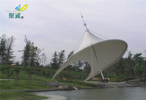 1、張拉膜結構的高點還能夠與采光和通風功用結合規劃,在高點處安裝透明材料,引進直射光線。