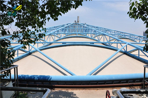 反吊膜由基布和涂層兩部分組成。依靠自身強大的抗拉能力,被用來制作成污水池反吊膜結構,污水池池體加蓋使用,突破了傳統結構建筑的直線設計理念,將反吊膜結構設計的曲面設計特點展漏無疑,是一種結構新穎,造型優美的現代化結構設計。