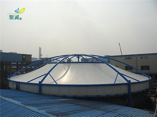 隨著我國國民經濟飛速發展和市政基礎設施建設全面展開,特別是污水處理廠等環保項目日益增多,污水池的環境、風貌及污水臭味等直接影響人們的生活和健康。所以隨著膜結構的興起出現了一種環保節能的污水池加蓋方式——反吊膜。