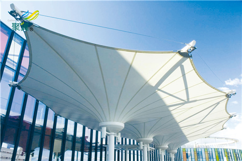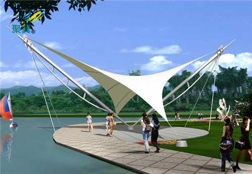 景觀膜結構建筑的造型豐富多彩,風格各異,藝術性強,具有濃厚的時代建筑藝術魅力。具有特定功能的建筑都可通過立意得以表達,張拉膜結構的特有外形體現了建筑自身的自然美感。