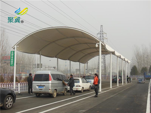 由于對停車棚的要求不斷的提高,具有更好性能的膜材就出現了,而且在加一些比較新的技術,在遇到一些比較極端的天氣的時候,這種結構的車棚的質量能夠使其發揮較好的作用,可以抵抗這種天氣,因此其使用時間較長。
