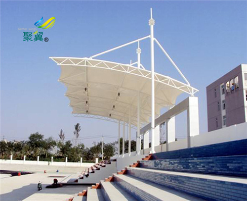 花色眾多好保養,它耐酸堿的侵蝕,下雨雨水洗滌擦干即可。更需注意的是,膜材的材質性能不同,功能也相對不同。一般建議,北方應選擇抗拉抗壓強度相對大的,在環境中的相適應。另外,膜結構看臺結構也是根據膜材的抗拉性能的另一種選擇,它的抗拉強度決定了它活潑的設計感,甚能為空間增加變化。