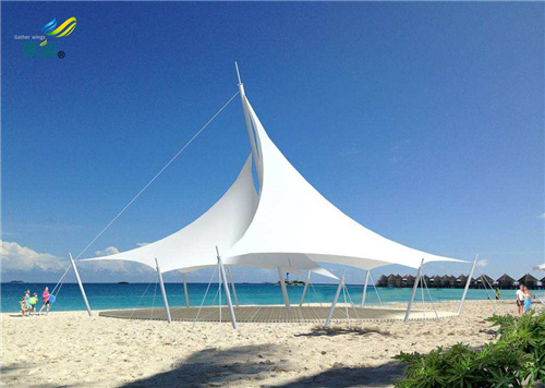 景觀膜結(jié)構(gòu)建筑的支撐一般為鋼結(jié)構(gòu),國內(nèi)對于鋼結(jié)構(gòu)的保護多采用涂防火涂料。國外類似建筑大多是不涂防火涂料的。還有一種更為穩(wěn)妥的辦法:***是在構(gòu)造上作處理,使膜面緊貼在鋼索下面,火災(zāi)中煙氣首先面對的是膜面,這樣鋼索下面又多了一個保護層,使鋼架不受任何高溫作用。