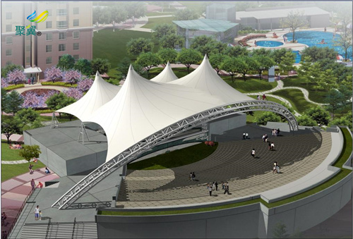 2、膜結構體育看臺造型優美,保養簡單,使用年限也較高,因此較多學校采用膜結構建筑,經濟實惠,也是個學校的建筑物。