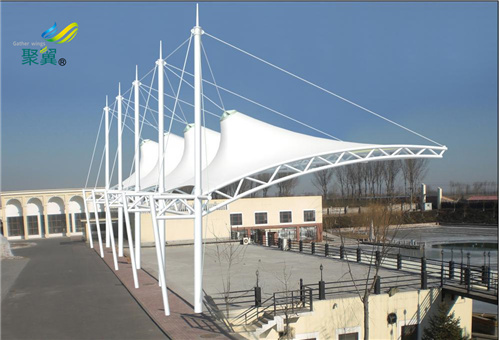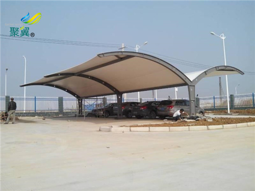 在制作膜結(jié)構(gòu)車棚的時候,有很多你不知道的事,今天帶你了解一下。 首先選材方面:目前國內(nèi)市場上車棚已經(jīng)普遍用膜結(jié)構(gòu),簡單說來膜結(jié)構(gòu)車棚具有很多優(yōu)點如:造型新穎、施工速度快、自潔性好、自重輕跨度大、防火抗震能力強、使用壽命長,相比較彩鋼瓦 陽光板車棚來講,首先要選膜結(jié)構(gòu)。