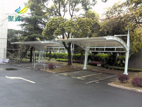 膜結(jié)構(gòu)車(chē)棚,是以建筑織物,即膜材料為張拉主體,與支撐構(gòu)件或拉索共同組成的結(jié)構(gòu)體系,它以其新穎獨(dú)特的建筑造型,良好的受力特點(diǎn)--成為大跨度空間結(jié)構(gòu)的主要形式之一。膜材料是指聚酯纖維基布或PVDF、PVF、PTFE等不同的表面涂層,配以優(yōu)質(zhì)的PVC組成的具有穩(wěn)定的形態(tài),并可承受一定載荷的建筑紡織品。它的壽命因不同的表面涂層而異,一般可達(dá)成10-20年。