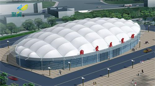 1 保證總體構造的可以信賴。充氣膜盡管與民居建筑截然不同,但在構造的安全性可靠性能規定上卻大相徑庭。如:依據本地氣侯狀況設定設計方案有效抗風載、雪載工作能力的充氣膜,所選用的機器設備要考慮安全性運作規定,并在發現異常狀況立即全自動警報。