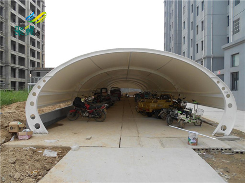 膜結構車棚成為物業公司的主要選擇方案。那么為什么居民小區搭建車棚一般選擇