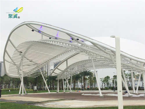 近年來(lái)城市的汽車,電動(dòng)車,自行車擁有量成倍上升,但城市建設(shè)規(guī)劃沒(méi)能盡快適應(yīng)這一發(fā)展的要求,常常是車無(wú)停放之地。所以停車場(chǎng)地的建設(shè)至關(guān)重要,由于膜結(jié)構(gòu)材料具有強(qiáng)度高、耐久性好、防火難燃、自潔性好,不受紫外線影響,使用壽命長(zhǎng),具有高透光率,所以