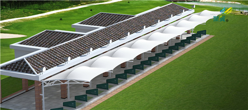 膜結(jié)構(gòu)看臺是膜結(jié)構(gòu)材料近年來應(yīng)用的一個新領(lǐng)域,膜結(jié)構(gòu)建筑能很好的籠罩全部的看臺,膜結(jié)構(gòu)的張拉樣式使得建筑的空間跨度變的更大,同時能縮小建筑的結(jié)構(gòu),建筑的整體重量減輕,這樣施工就會變的簡單安全。這些都是膜結(jié)構(gòu)被廣大用戶選擇的關(guān)鍵因素。膜材的表面都有一種涂層,涂層是為了預(yù)防灰塵雨水的影響,起到保護膜結(jié)構(gòu)使用年限的作用。