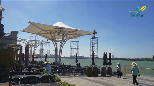 膜結構工程的維護和維護。景觀膜膜材外表不應與刀子、銳器接觸,以免劃破及磨傷膜材外表。一旦發現膜材被劃破、嚴重磨傷等景象時,應及時采取有效措施以免磨傷愈加嚴重,同時告訴廠商派人修復,鋼構件外表不得蒙受硬物打擊與劃傷,不得接觸各種酸性、堿性和有機溶劑。