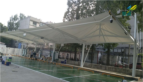 膜結構遮陽棚所謂壓延成型,就是將選定的軟PVC經塑煉后投入壓延機,按照所需厚度、寬度壓延成膜,立即與布基粘合,再經過軋花、冷卻即可制得壓延膜材。由于膜結構需要準確的設計及剪裁,以達到理想的效果,大衛、蓋格和哥倫比亞大學的同僚邁克、馬克麥克和約塞夫、賴特共同開發了非線性鋼索計算程式,為氣撐式大型膜屋頂工程設計奠定了基礎。膜材料本身沒有抗壓和抗彎剛度,抗剪強主芤很差。