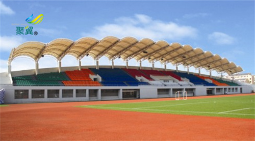 體育場看臺雨棚的遮擋效率及安全一直是人們很看重的,膜結構看臺應要保障安全,骨架結構的間距,間距不能過大否則會影響其承受力。膜結構看臺具有以下性能優點,因此深受人們的青睞: