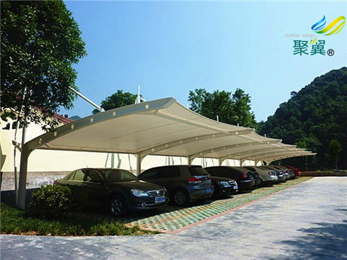 膜結(jié)構(gòu)停車棚是一座雕塑,一件藝術(shù)品,給人美的視覺享受。其柔美,其曲線,其剛?cè)岵湄S厚外型,其潔白無瑕,讓人眼前一亮,回味悠長。簡便性:重量輕,肯定確保棚下人和物的安全。
