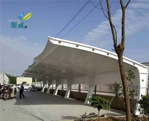 膜結構停車棚的破損比較大就要采納掩蓋法,首先打磨受損有些的邊際,使其平坦,用潔凈的布插潔凈塵埃,然后依據破損面積截圖大于其面積2倍的掩蓋資料如彩鋼板,陽光板等,在收存邊際涂改上專用強力玻璃膠,然后把膜結構停車棚以面積中間受力點掩蓋在受損面外表,輕輕揉捏使期接觸均勻等風干以后用防水玻璃膠將接縫處涂改一遍防止水的滲漏。