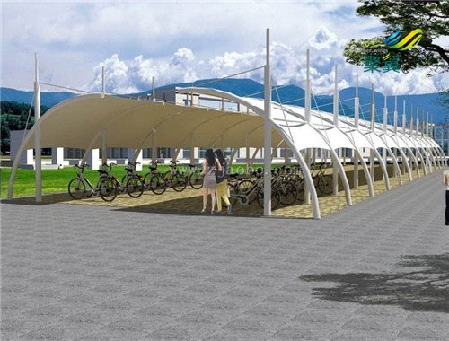 膜結(jié)構(gòu)停車棚這個(gè)建筑設(shè)施,膜結(jié)構(gòu)房頂有利于自動(dòng)滑雪排水的設(shè)計(jì);