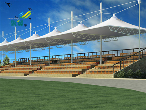 膜結構看臺的建設是非常復雜的,它主要涉及到了力學理論,用到了大學里比較難的課理論力學。張力、拉力、摩擦力等,所以在施工過程中一定要注意圖紙標注的位置。張拉成型是整個膜結構看臺工程施工的重要環(huán)節(jié),施工項目能否取得效果,取決于張拉是否滿足設計要求。