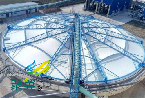 4、污水池反吊膜安裝快捷,鋼結(jié)構(gòu)和膜體的加工均在工廠進行,加工質(zhì)量得到可靠保障。現(xiàn)場安裝時間短,減少對場地的占用