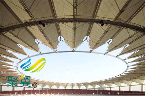 三、可以使得體育場采光充足,由于膜材具有透光性,在陽光的照射下,由膜覆蓋的體育場館內部充滿自然漫射光,使得整個場館沒有強烈的光面與陰影的區分,保證了視覺上的和諧。