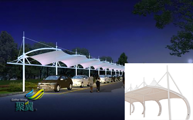 膜結(jié)構(gòu)車棚膜面主要松弛原因有關(guān),一般形成膜面松弛的原因有膜面過于扁平,或預(yù)張力不足,沒有及時(shí)進(jìn)行二次張拉,膜結(jié)構(gòu)車棚膜面的整體剛度很低,這些原因都會(huì)造成膜結(jié)構(gòu)車棚在強(qiáng)風(fēng)狀態(tài)下出現(xiàn)大幅度擺動(dòng)。