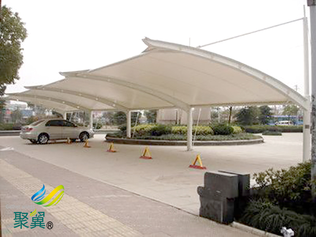 這些膜結構車棚都是采用金屬構件來制作,因此具有笨重,形式單調的缺點,沒有個性和美觀。