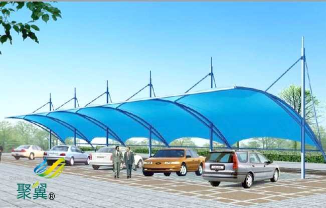 傳統膜結構車棚結構為了減小結構的變形就必須增加結構的抗力;而膜結構車棚是通過改變形狀來分散荷載,從而獲得最小內力增長的。