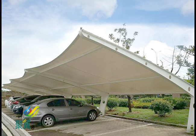 自潔性。膜結(jié)構(gòu)車棚膜建筑中采用具有防護(hù)涂層的膜材,本身不發(fā)黏,落到膜材表面的灰塵可以靠雨水的自然沖洗而達(dá)到良好的自潔效果,同時(shí)保證膜結(jié)構(gòu)車棚建筑的使用壽命。