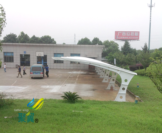 目前市場上有很多膜結構車棚,這些膜結構車棚大致也分為鋼構造和膜構造停車棚。不同材質的溫州停車棚的性能也不同。