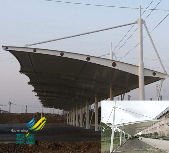 膜結(jié)構(gòu)車棚膜構(gòu)造和鋼構(gòu)造主要支架構(gòu)造有區(qū)別,但是膜結(jié)構(gòu)車棚棚頂資料普通都應(yīng)該選取納米薄膜資料,特性是膜結(jié)構(gòu)車棚防高溫,耐腐蝕,阻燃性好,清洗便當(dāng)?shù)葍?yōu)勢。
