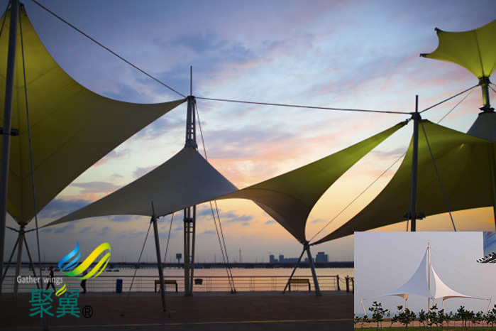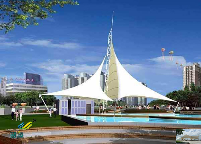 2.極具表現力的建筑形態:具有特定功能的建筑都可通過立意得以表達,景觀膜結構的獨特外形體現了建筑自身的自然美感。這些建筑形態本身和與其相協調的傳統建筑一起構成了令人興致盎然的地面標志性建筑。優秀的膜結構設計是結構與外形的有機融合,使其顯得了類拔萃,同時與自然環境、歷史及現代的城市景觀有機結合。