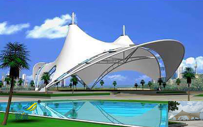 2.極具表現力的建筑形態:景觀張拉膜具有特定功能的建筑都可通過立意得以表達,景觀膜結構的獨特外形體現了建筑自身的自然美感。這些建筑形態本身和與其相協調的傳統建筑一起構成了令人興致盎然的地面標志性建筑。優秀的膜結構設計是結構與外形的有機融合,使其顯得了出類拔萃,同時與自然環境、歷史及現代的城市景觀有機結合。