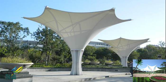景觀膜結構標示區域:出色的景觀膜結構設施是具有一定的標志性特征,景觀膜結構是對一個地區的人文環境和地理文化的一種象征和反映,通過景觀膜結構設施,給人加強了對這個地方的印象和表示性。