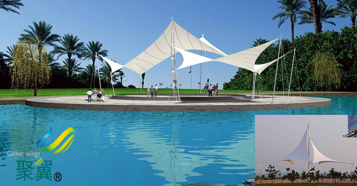 景觀膜結構工程能提供豐富多彩的用途,并與園林景觀、公園景觀溶為一體,創造出讓人們盡情享受的快樂空間,充分展示了景觀膜結構構件清晰受力的藝術之美,它巧妙的整合了周圍的環境,帶給人們一種高貴典雅、浪漫溫馨之感。另外由于膜材料本身特有的顯色性,在夜間彩燈的映射下能形成絢麗繽紛的景觀。 不僅給人們提供遮陽避雨的空間,同時,也由于這種生動活潑的造型能給人們帶來時尚、簡約的休閑感受,所以廣受大眾歡迎。