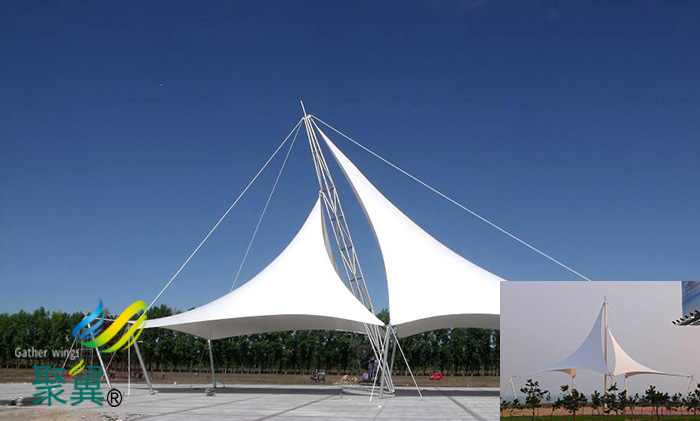 景觀張拉膜結構作為一種建筑體系所具有的特性主要取決于其獨特的形態及膜材本身的性能。恰由于此,用膜結構可以創造出傳統建筑體系無法實現的設計方案。