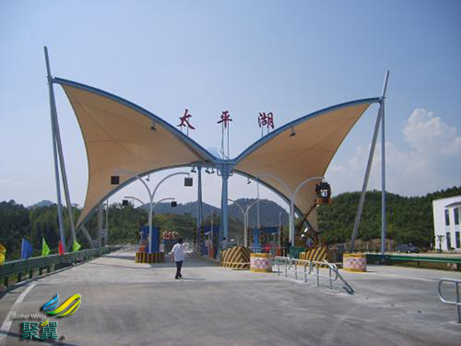 如何達到自由、輕巧又不失柔美,行業人給它取名為索膜結構建筑。景觀膜結構建筑自身重量很輕,僅為鋼結構的1/5,混凝土結構的1/40;因此索膜結構對地震力有良好的適應性,而對風的作用較為敏感。此外雪荷載和活荷載的作用也在設計范圍之內。