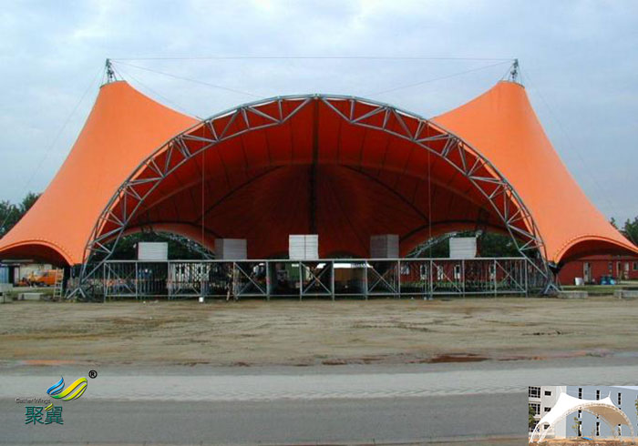 一、舞臺(tái)膜結(jié)構(gòu)整體更加輕盈:膜材自重輕,相比傳統(tǒng)的建筑方式整體質(zhì)量不到二分之一,舞臺(tái)膜結(jié)構(gòu)通過(guò)良好的設(shè)計(jì)可以最大程度的降低用鋼量,而且抗震等級(jí)高,還能夠抵御12級(jí)以上臺(tái)風(fēng)。這是一般的雨棚所不能相比的。